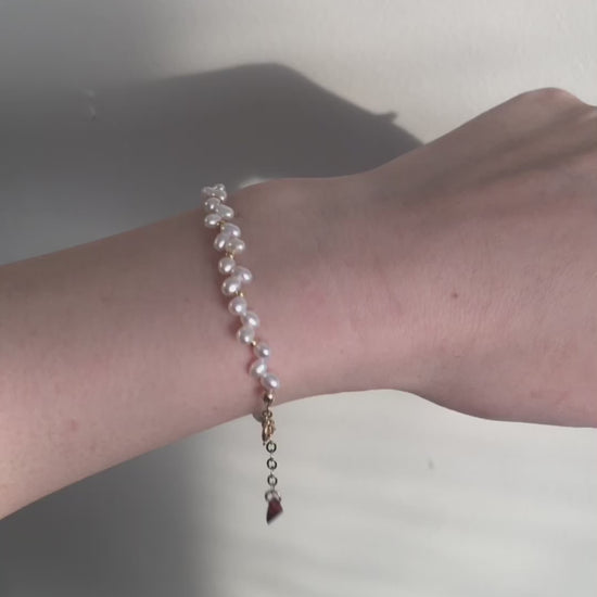 Subtle 14k gold-filled accents add warmth and refinement, while the elegant clasp is finished with a deep red heart charm — a quiet symbol of love, devotion, and sincerity. Minimalist in form yet rich in emotion, this bracelet is designed for everyday wear, whether worn alone or layered.