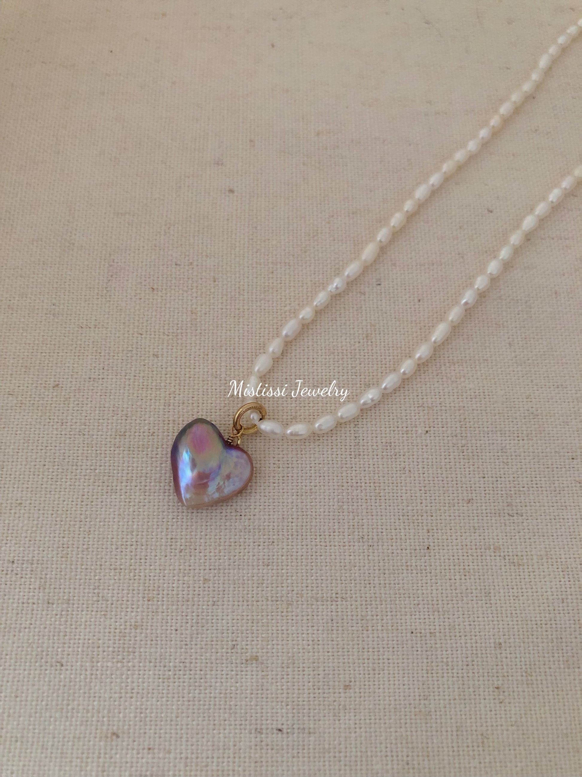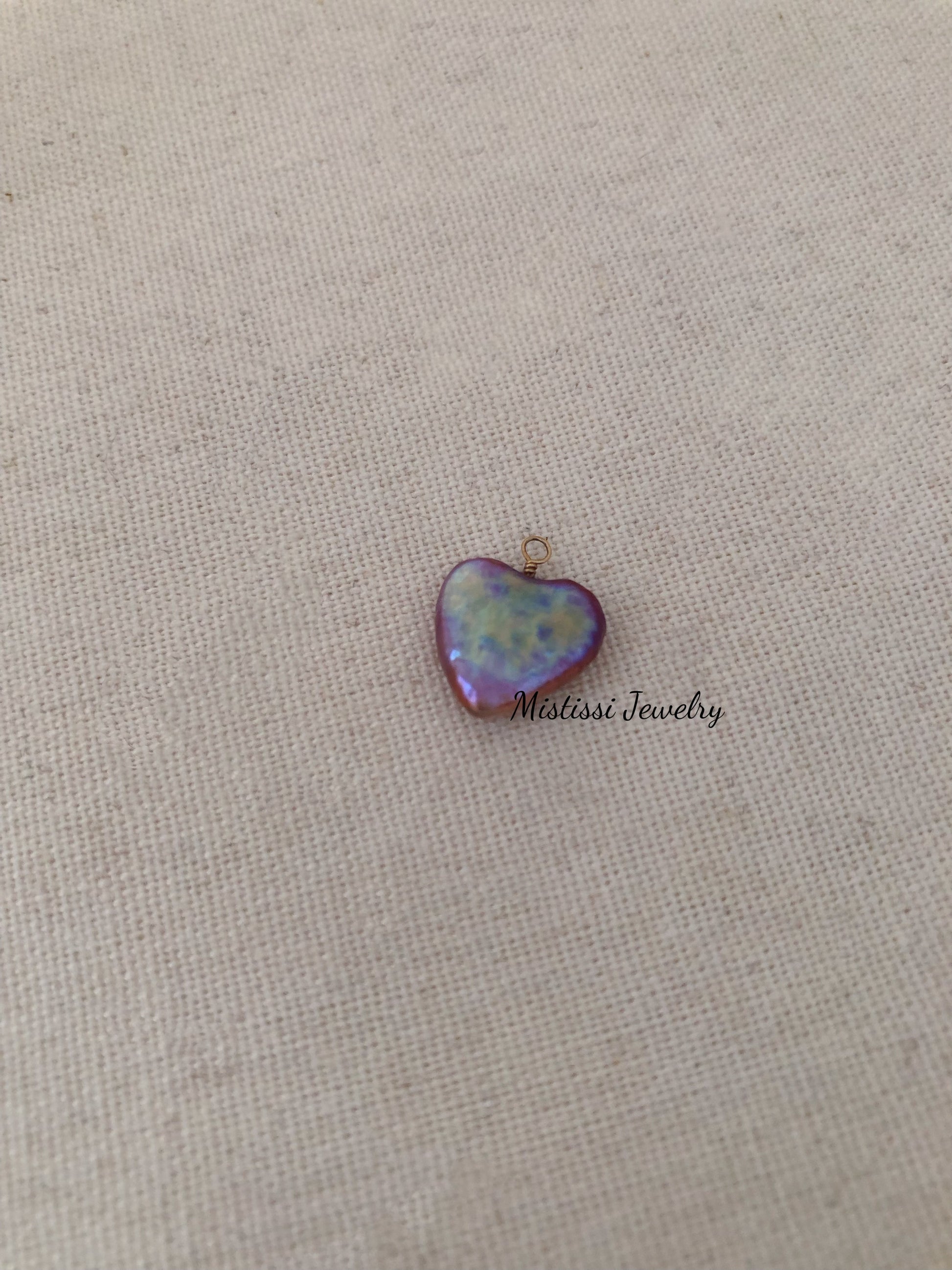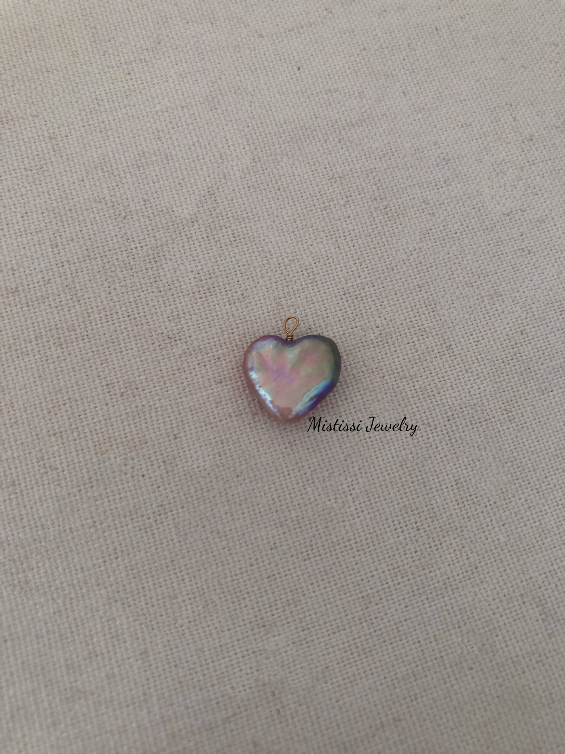 Soft, romantic, and naturally luminous. This heart-shaped freshwater pearl pendant features a gentle organic silhouette with a rich purple luster and subtle iridescent glow, making each piece beautifully one of a kind.