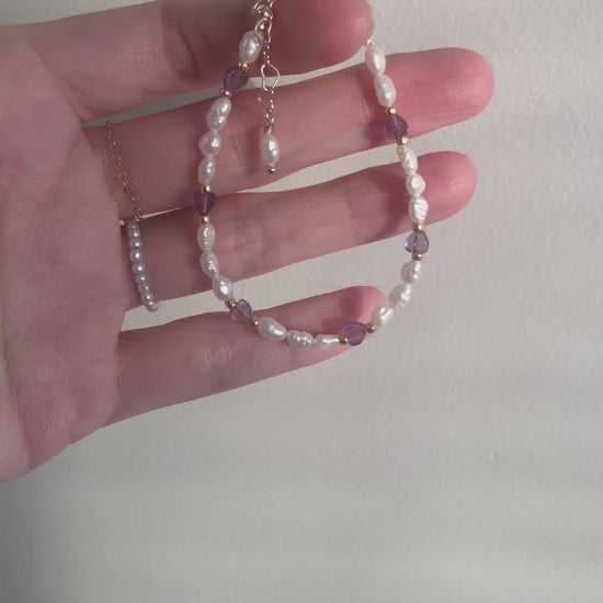 Soft, organic, and full of quiet emotion, the Amour de Mistissi – Cœur d’Améthyste Bracelet is handcrafted with natural freshwater keshi pearls, each uniquely shaped to celebrate natural beauty and gentle movement.